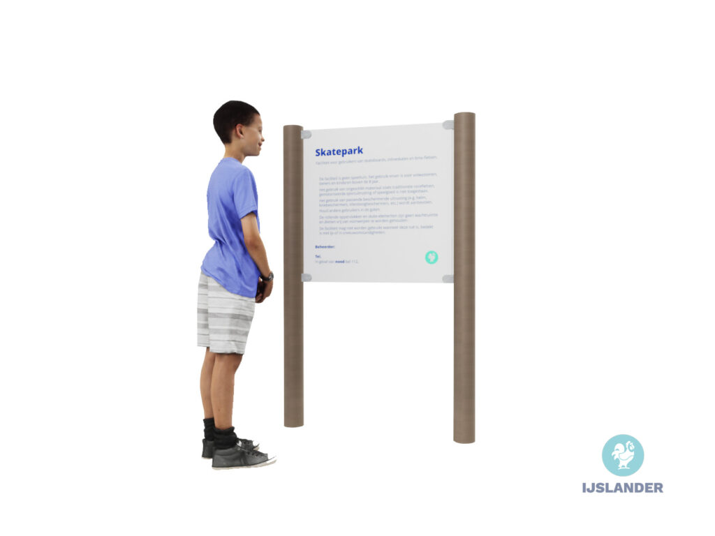 Auf diesem Brett aus HPL mit Robinia-Holzposten können Sie zum Beispiel Anweisungen für Sportübungen oder Regeln für Ihren Spielplatz anbringen. Was immer Sie möchten!