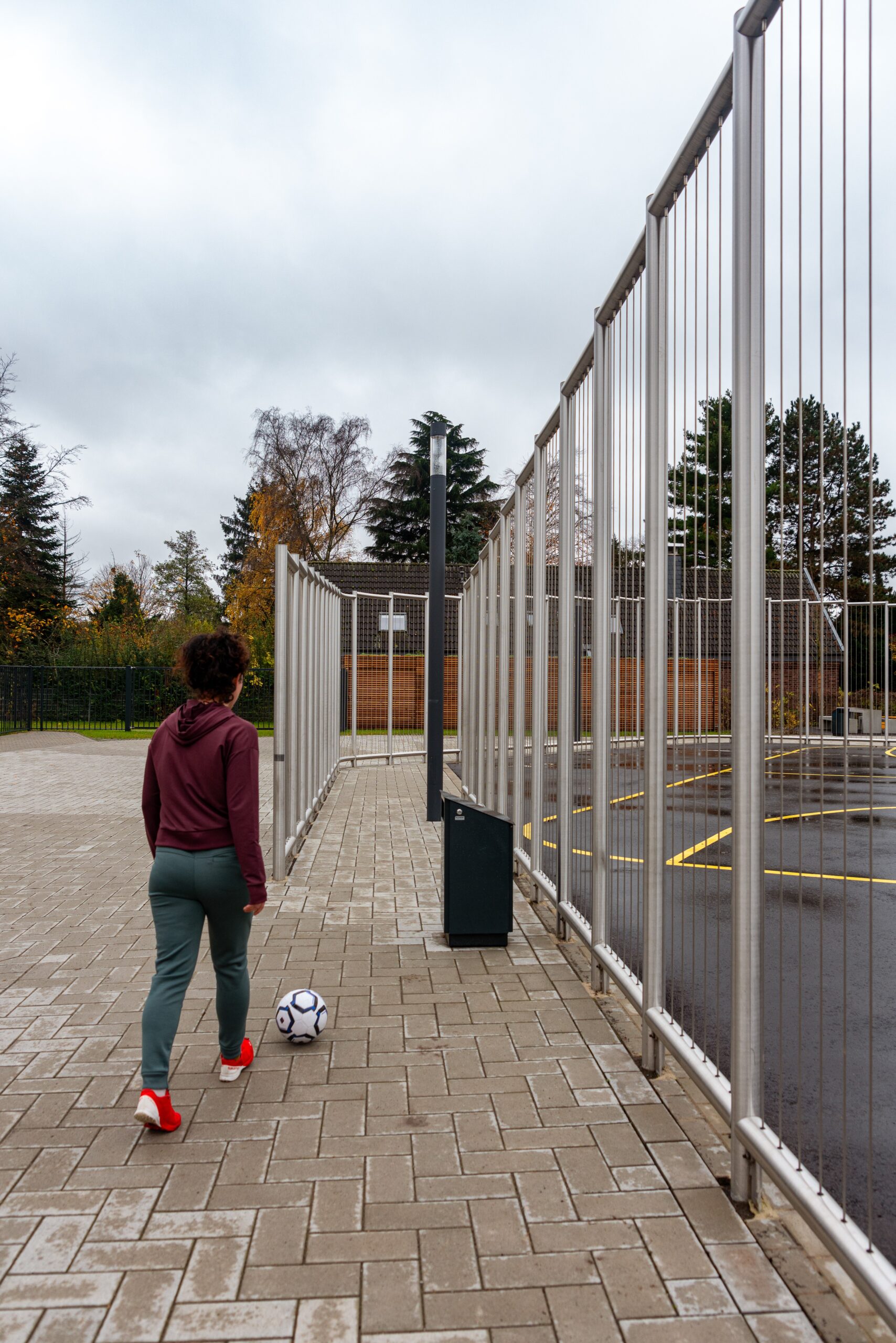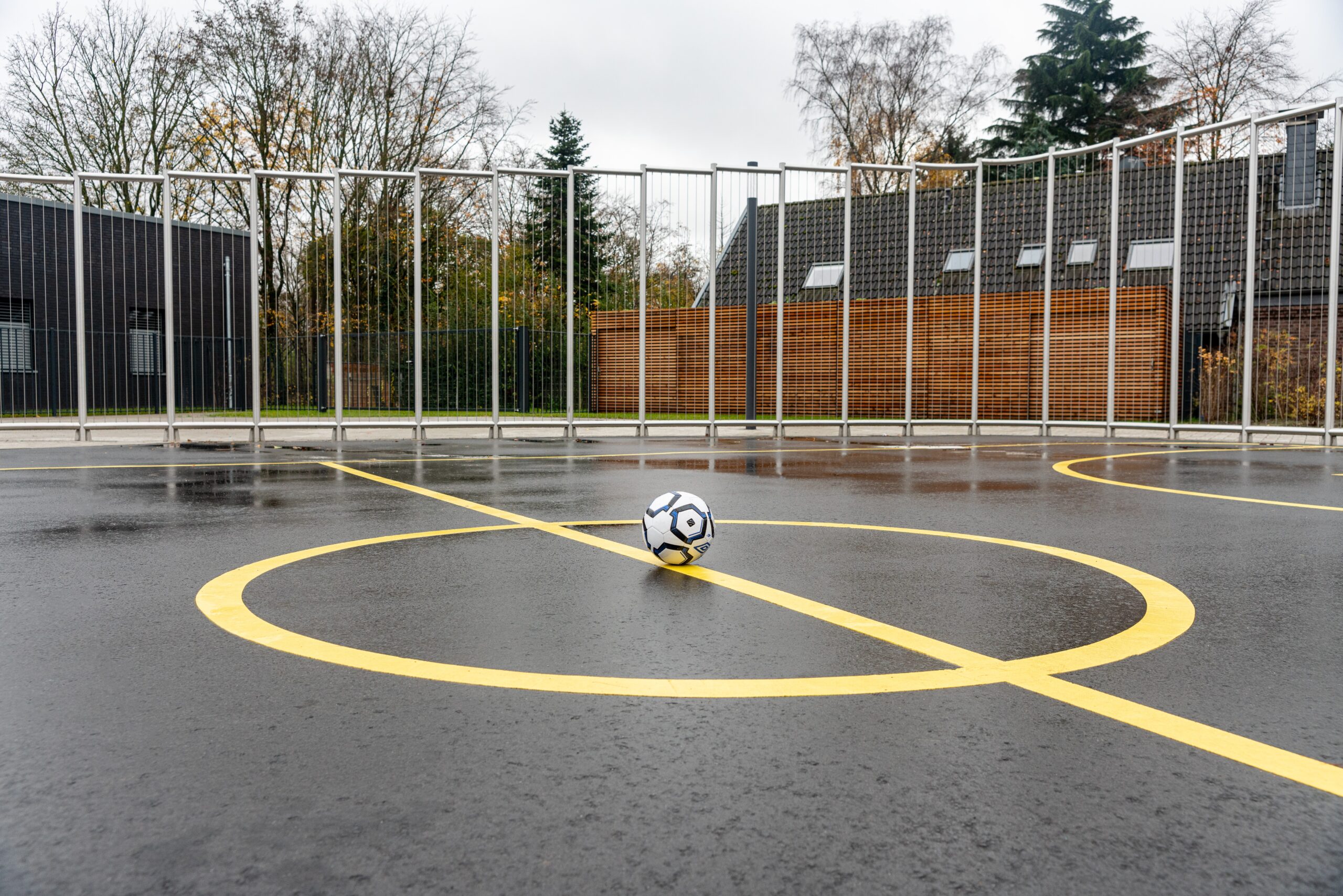 An einer Realschule in Düsseldorf war es Zeit für Erneuerung. Um der Jugend mehr Raum für Sport und Bewegung zu bieten, wurde auf dem Schulhof eine große Fußballarena installiert. Die CityBox® ist über einen Schleuseneingang zugänglich.