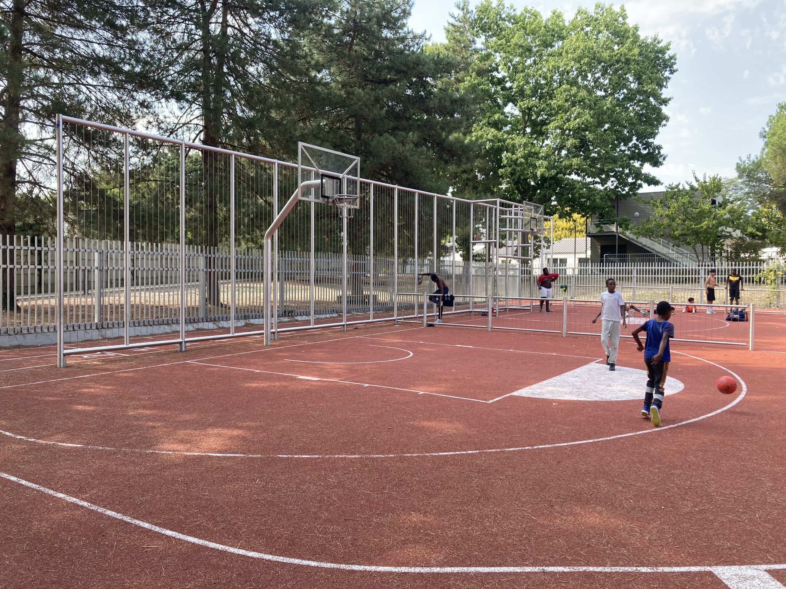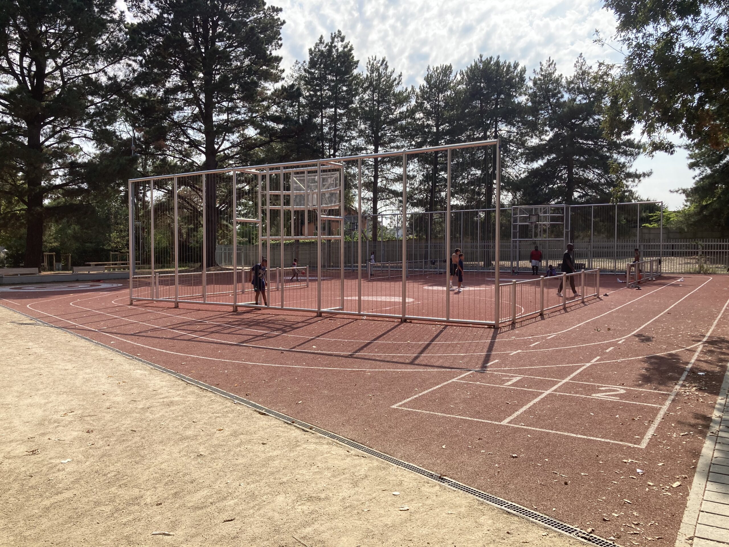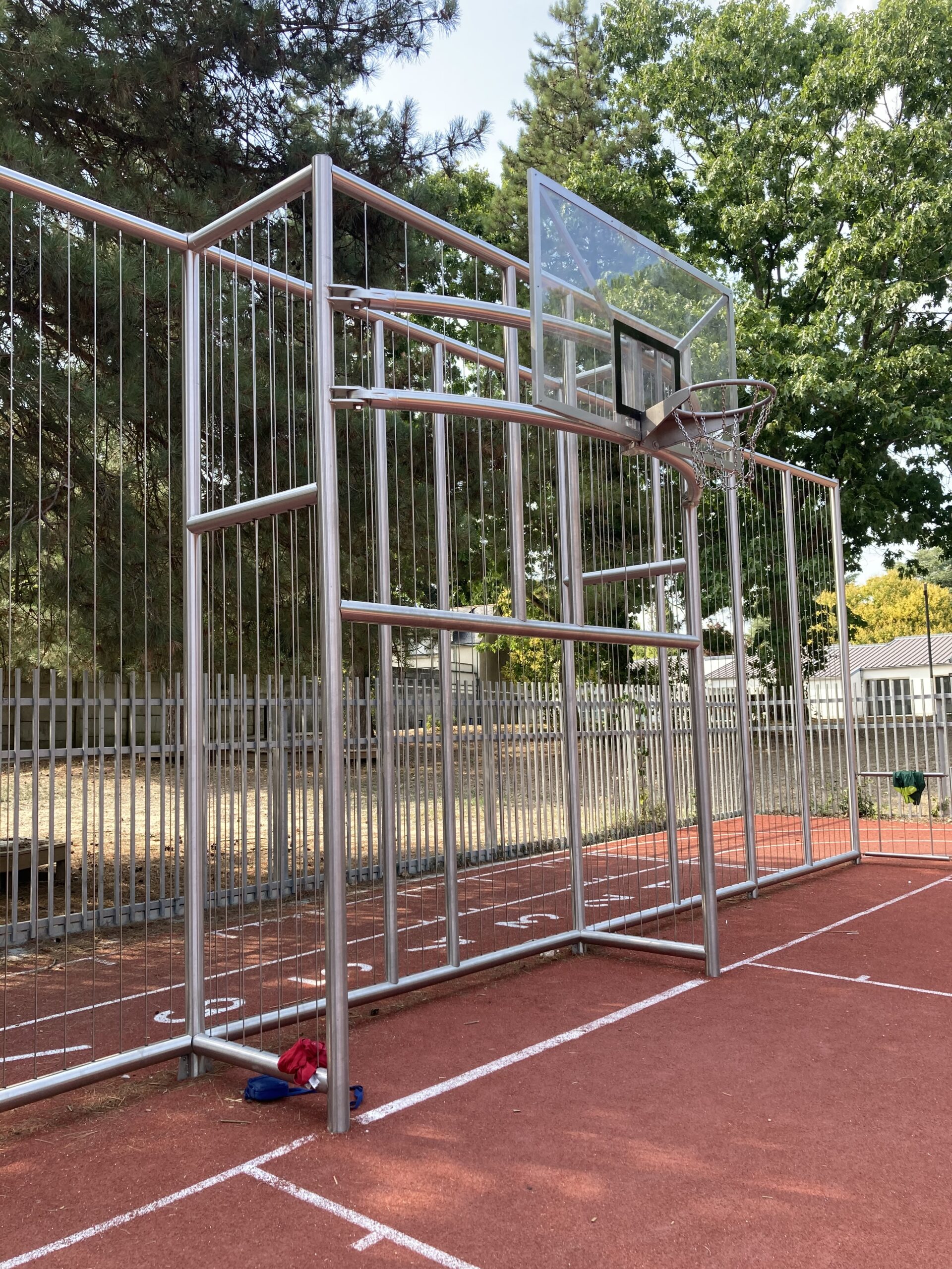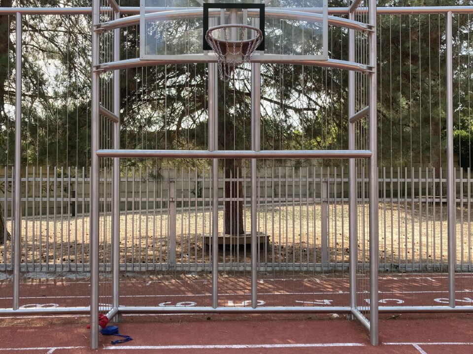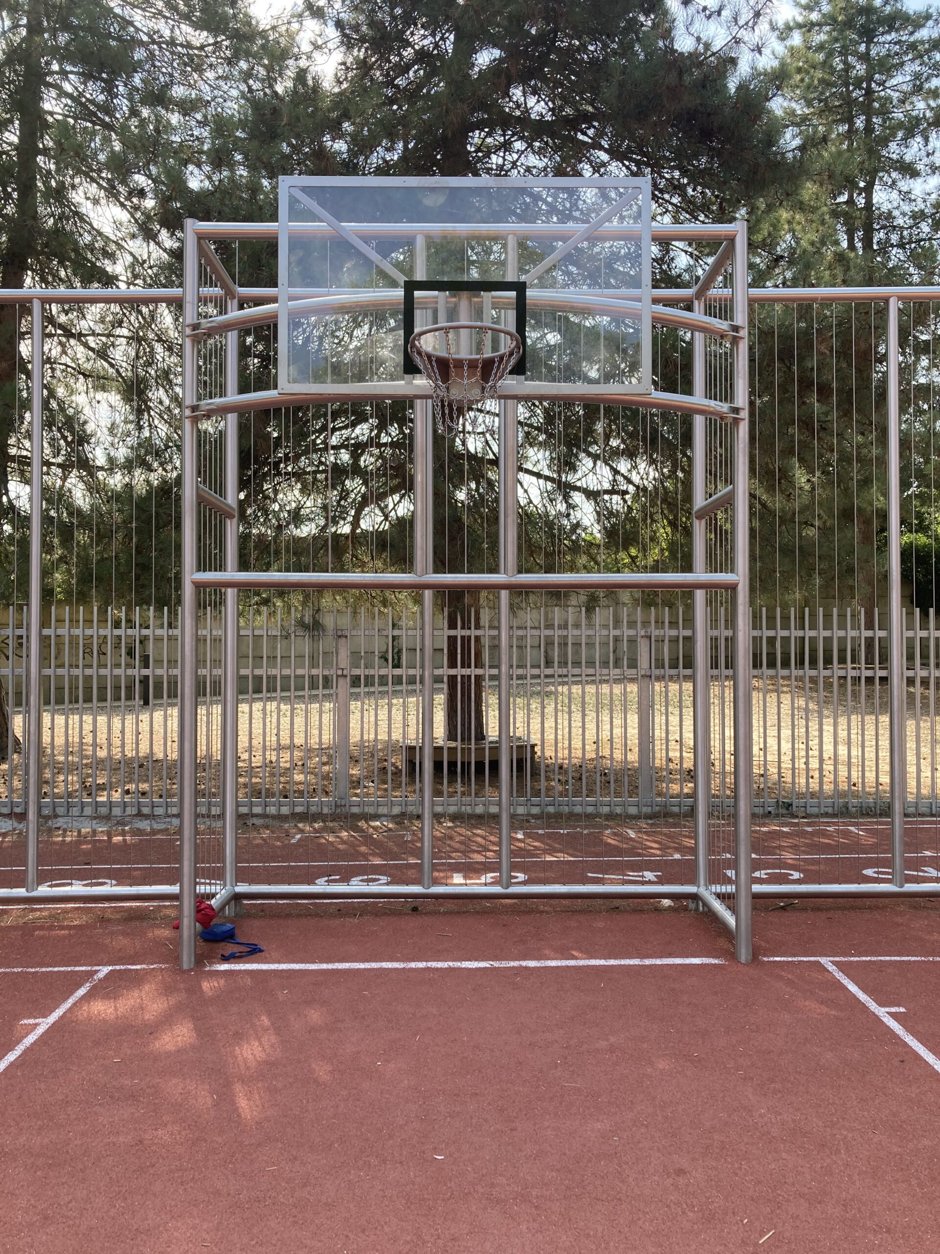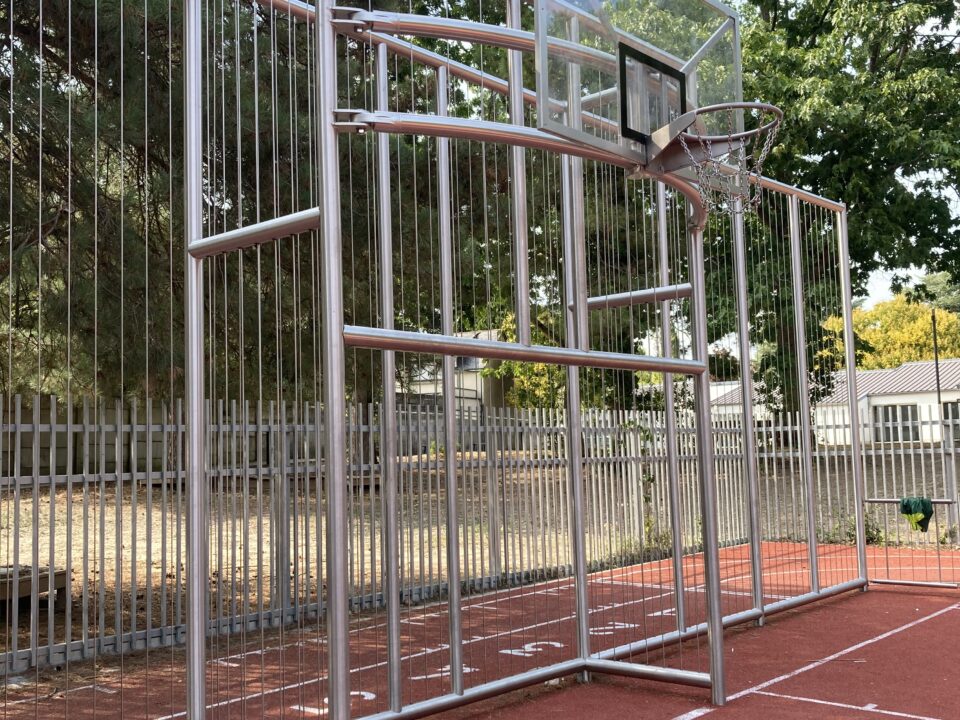 What makes this CityBox® in Nantes unique is the extended back wall, where an additional basketball hoop with a polycarbonate backboard has been installed (4026-PC). The polycarbonate basketball backboards are known for their durability and aesthetic appeal.