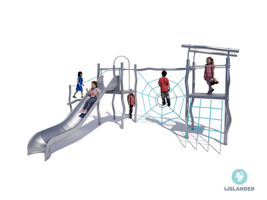 Op het Carisma Combitoestel kunnen kinderen samen spelen en elkaar ontmoeten op de twee klimplateau’s. Tegelijkertijd prikkelen de gebogen staanders de fantasie van de spelende kinderen, want zo’n kronkel kan namelijk van alles zijn. Speelelementen van het Carisma Combitoestel: klimnet, oploopnet, klimplateau’s, brandweerstang, evenwichtsbalk met vasthoudtouw en glijbaan. Het Carisma Combitoestel is verkrijgbaar in elke standaard RAL-kleur. De netten en het vasthoudtouw zijn leverbaar in de kleuren rood, zwart, blauw en groen.