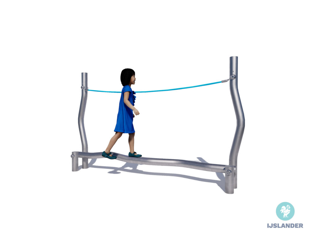 Op de Carisma Evenwichtsbalk met vasthoudtouw ontwikkelen kinderen hun evenwichtsgevoel, terwijl ze leren balanceren. Tegelijkertijd prikkelen de gebogen staanders de fantasie van kinderen, want zo’n kronkel kan namelijk van alles zijn.