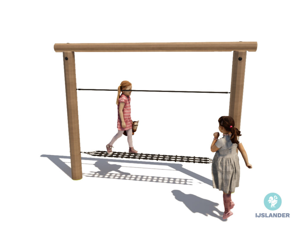 Op de Kupa Max balanceerbrug kun je je balans oefenen door van de ene kant naar de andere kant te klauteren. Word jij een pro in balanceren op dit klimtoestel?