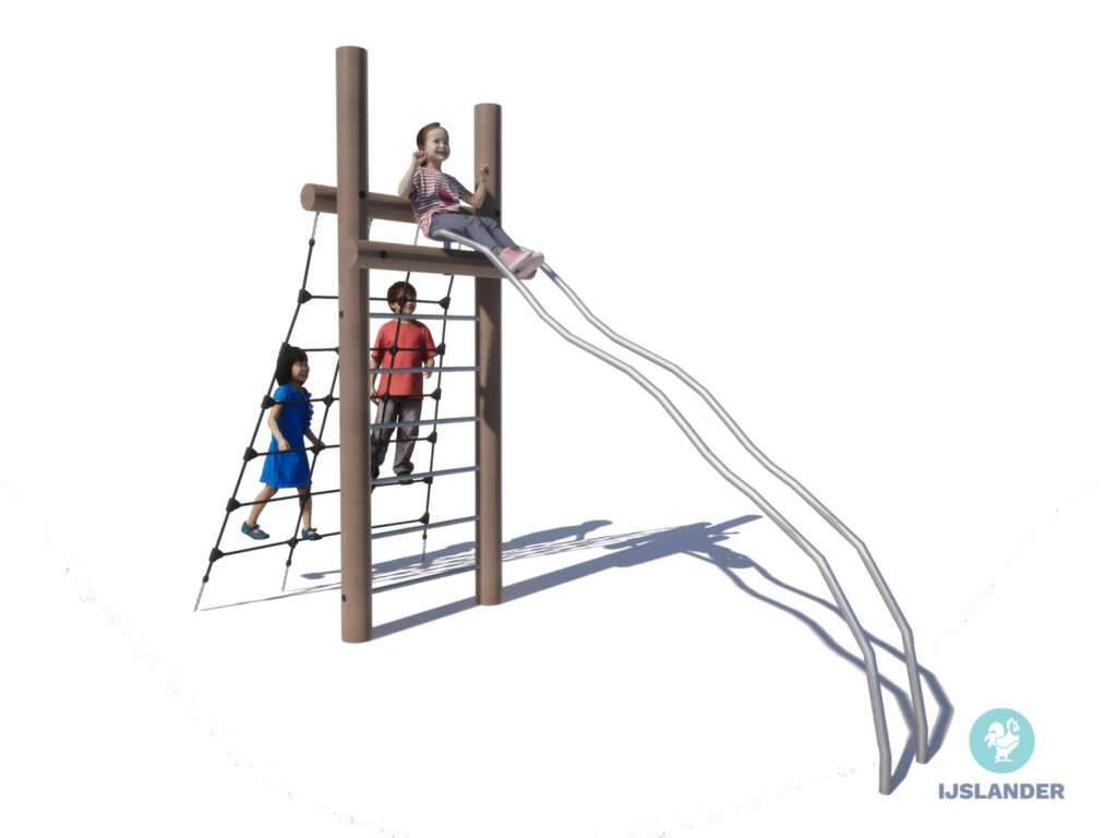 Weinig ruimte, maar toch op zoek naar een klimtoestel? Dan is de Kupa Max Lennart een goede optie. Dit toestel heeft een klimnet, een trap en dubbele glijstangen.