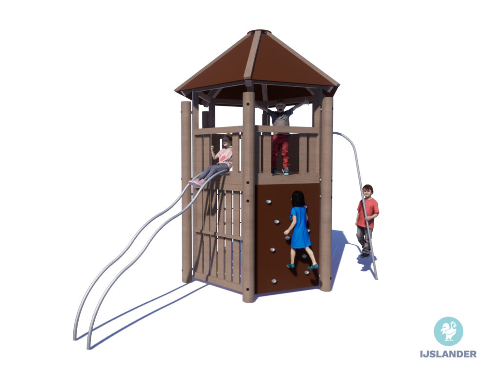 De Kupa Mikkel is een klimtoestel dat bestaat uit een klimtoren met diverse klimopties. Kinderen kunnen omhoog klimmen via verschillende klimwanden. Dit toestel is ontworpen om kinderen uit te dagen te klimmen en te klauteren.