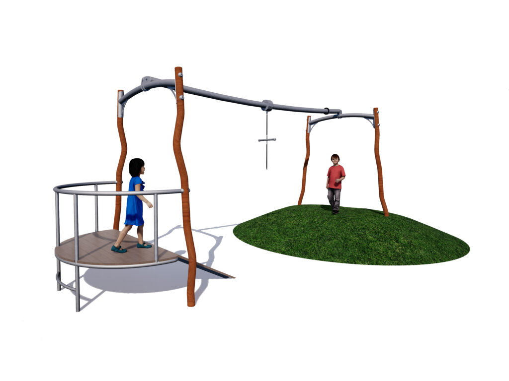 Op de Glider met aan beide kanten een talud of plateau kunnen kinderen lekker zwieren en zwaaien aan het hangelement terwijl ze van de ene naar de andere kant zoeven. Eraf springen kan aan beide kanten aan het einde bij de staanders met open ruimte er tussen. Daarnaast kun je kiezen voor een raillengte van 4,50m, 5,75m of 7,50m.