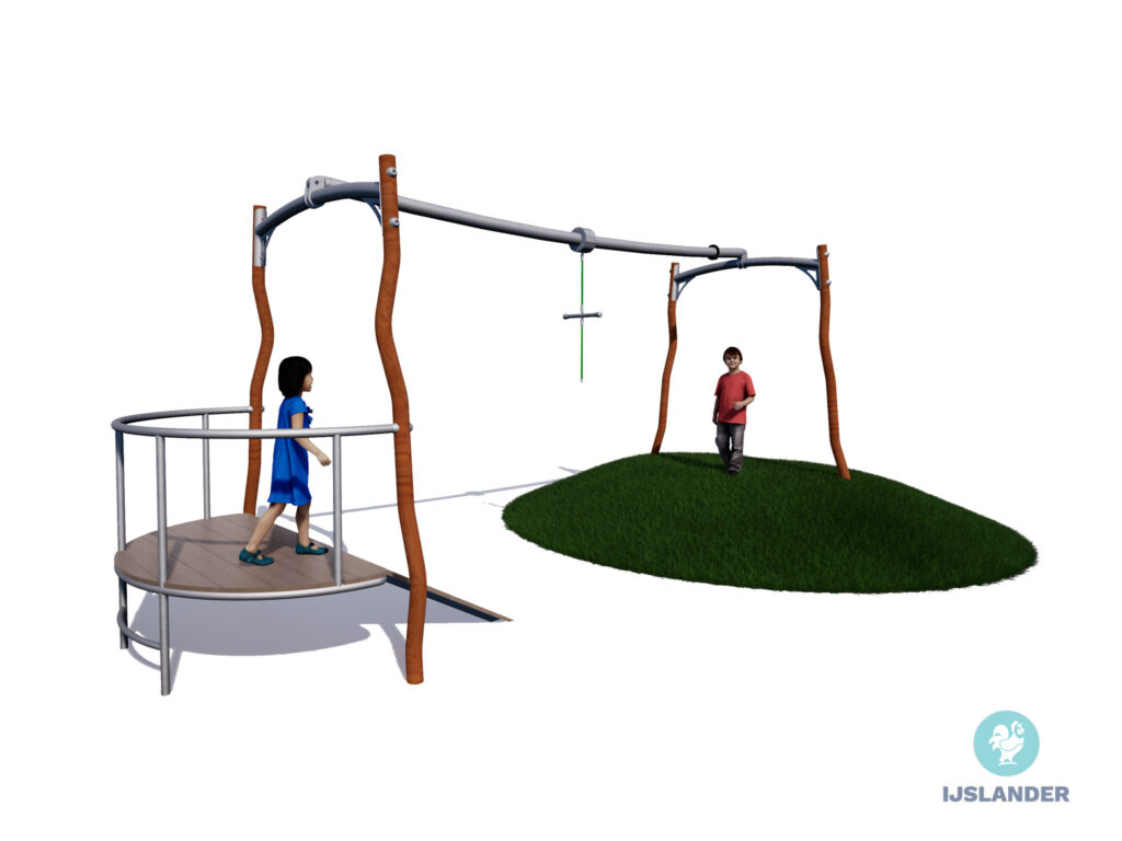 Op de Glider met aan beide kanten een talud of plateau kunnen kinderen lekker zwieren en zwaaien aan het hangelement terwijl ze van de ene naar de andere kant zoeven. Eraf springen kan aan beide kanten aan het einde bij de staanders met open ruimte er tussen. Daarnaast kun je kiezen voor een raillengte van 4,50m, 5,75m of 7,50m.