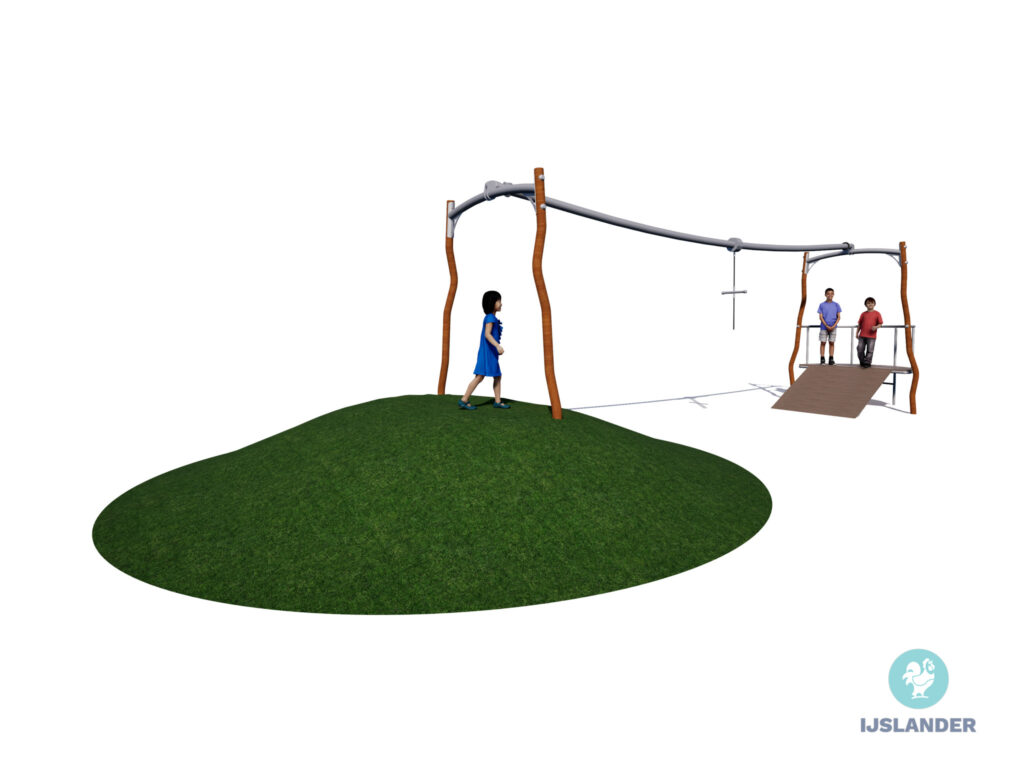 Op de Glider met aan beide kanten een talud of plateau kunnen kinderen lekker zwieren en zwaaien aan het hangelement terwijl ze van de ene naar de andere kant zoeven. Eraf springen kan aan beide kanten aan het einde bij de staanders met open ruimte er tussen. Daarnaast kun je kiezen voor een raillengte van 4,50m, 5,75m of 7,50m.