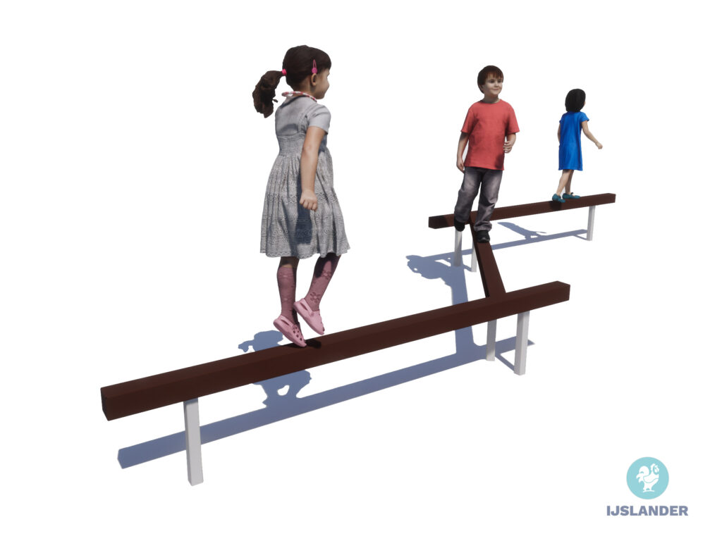 Dit balanceertoestel bestaat uit verschillende balanceerbalken. Door de verschillende balken is het een uitdaging om naar de overkant te komen.