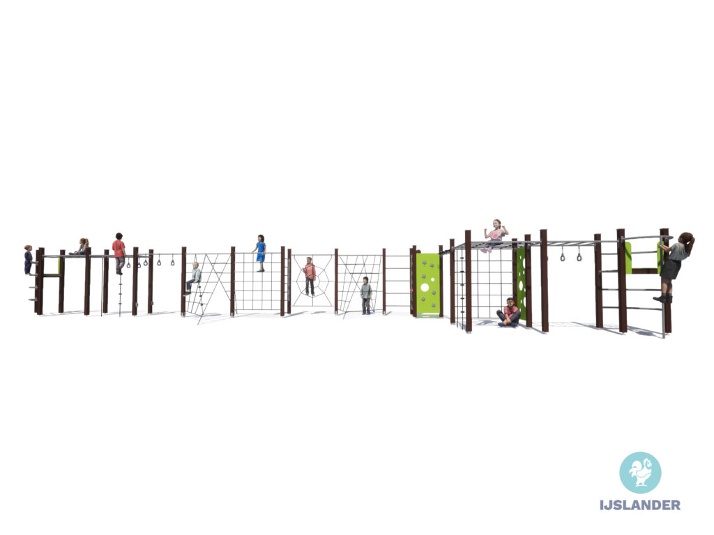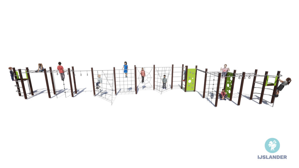Wie is er het snelst van de ene naar de andere kant? Dit mooie parcours is enorm geschikt voor wedstrijdjes en voor het trainen van je uithoudingsvermogen, motoriek en kracht.