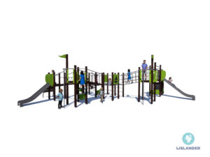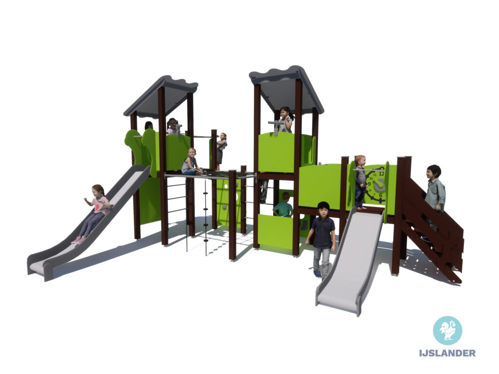 Dit grote klimtoestel bestaat uit verschillende onderdelen. Zoals RVS-glijbanen, trappen een klimtouw en een klimwand. Wil jij samen met je vriendjes en vriendinnetjes op dit toestel spelen?