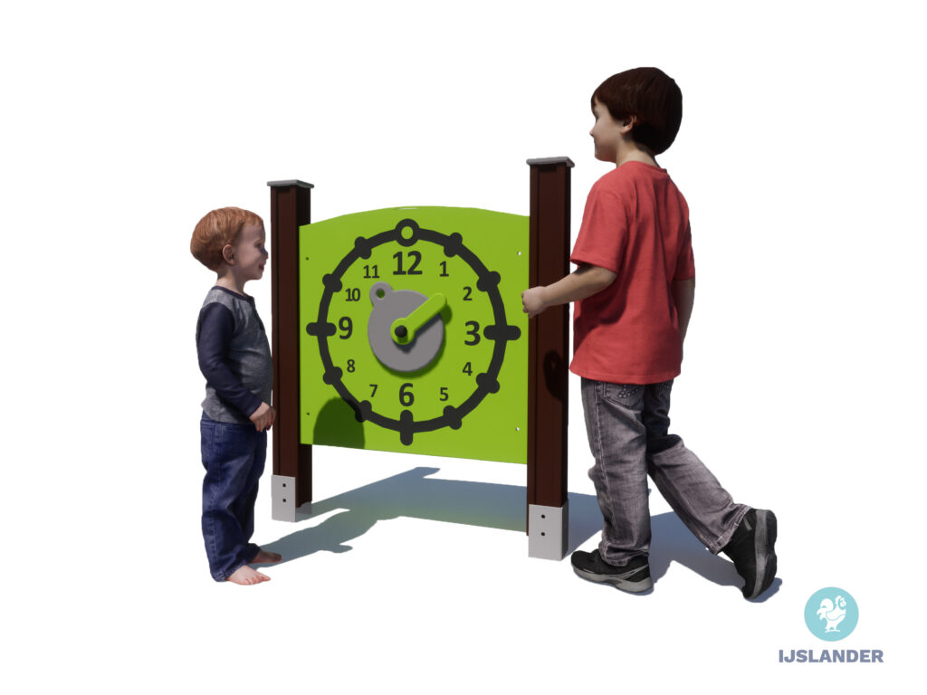 Met dit speelpaneel oefen je spelenderwijs met klokkijken. Wie zet de klok het snelst op de juiste tijd?