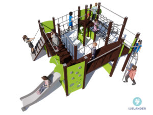 Bij de Tino Flox kan je samen met je vriendjes en vriendinnetjes tegelijk schommelen en klimmen. Doordat het toestel uit 2 delen bestaat kan je met meerdere kinderen tegelijk spelen. Zwaai jij vanuit één van de torens naar je vriendjes of vriendinnetjes?
