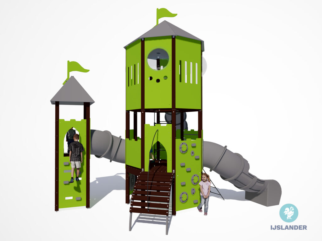 Drie glijbanen in één klimtoestel, hoe geweldig is dat? Bij de Tino Malva kan er veel gespeeld worden. Glijd je van de glijbaan af, of klim je via de klimwanden omhoog naar de torens?