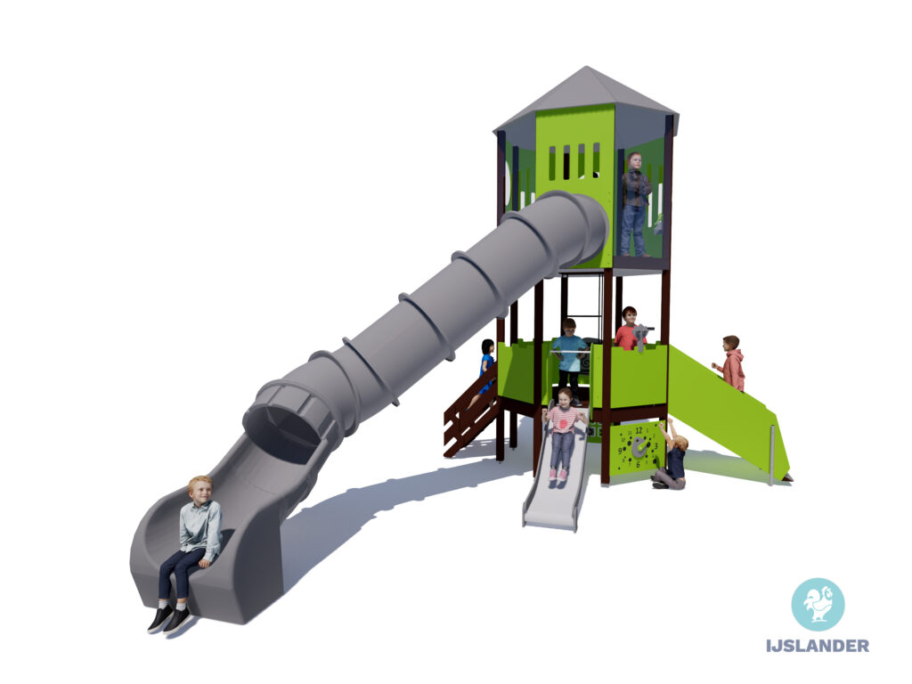 Bij de Tino Statice waan je jezelf in de toren van een kasteel. Bestorm de toren en kies een glijbaan. Wie kan het snelst naar beneden via de kunststof glijbaan? Natuurlijk moeten er ook ridders op de uitkijk staan.