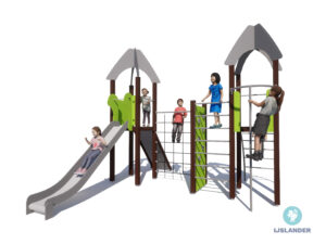 De Tino Vlierbloesem is een uitdagend klimtoestel waar volop geklommen en geklauterd kan worden. Met de hoge toren en speelse elementen zoals het klimnet, trap en klimwand, prikkelt het toestel de fantasie van elk kind.