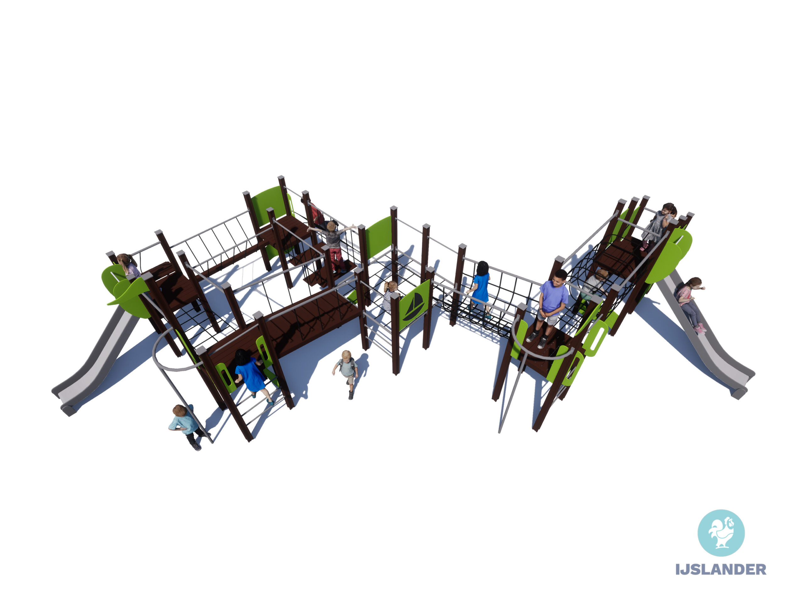 Deze uitgebreide en gevarieerde lijn speeltoestellen is geschikt voor kinderen van 4 tot 12 jaar. Met grotere constructies bieden we meer uitdaging en plezier, terwijl we tegelijkertijd een bredere doelgroep bedienen. In combinatie met de Nino-lijn creëren we een speelse omgeving.